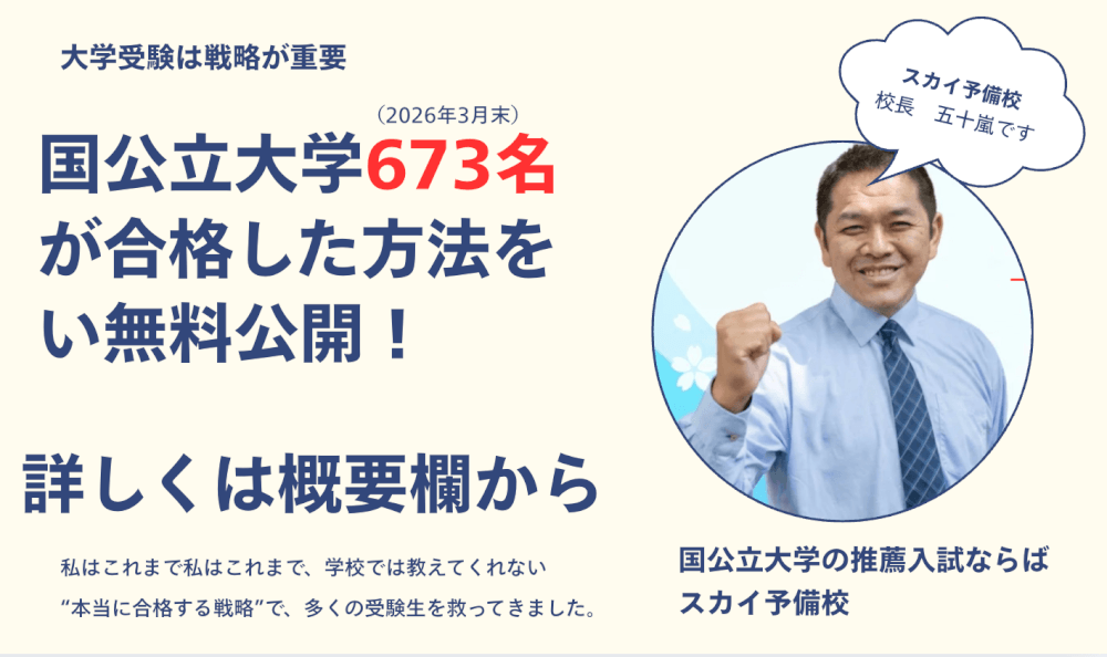 この度は、数ある学習機関の中からスカイ予備校にご関心をお寄せいただき、心より感謝申し上げます。