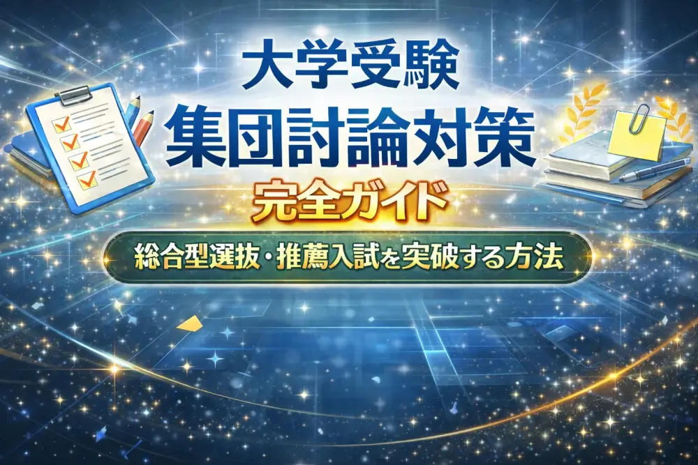 本記事では、大学受験の集団討論で合格を勝ち取るための全知識を体系的にまとめました。基礎知識から実践テクニック、頻出テーマ対策、本番直前の準備まで、この記事を読めば集団討論対策のすべてが分かります。