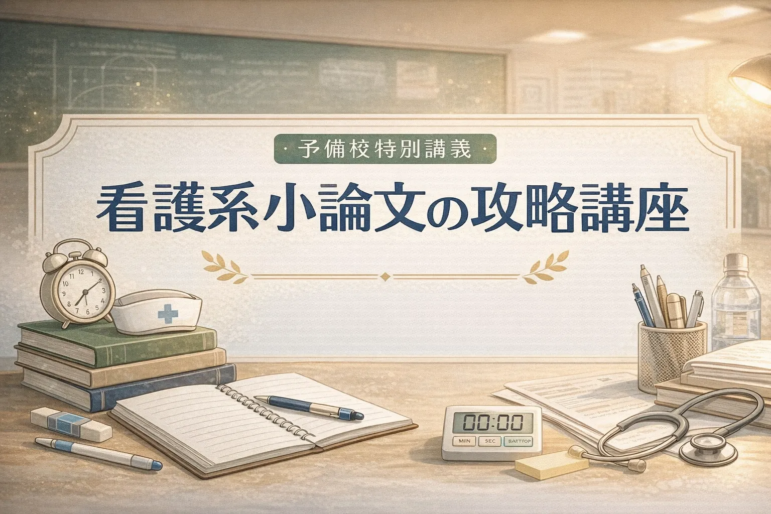 看護系小論文は、知識・論理力・表現力・看護観の全てが問われる総合試験です。本記事で紹介した頻出3大テーマ(医療倫理、高齢化社会、チーム医療)を中心に、模範解答の型を身につけ、AI時代の効率的学習法を活用してください。そして何より、「なぜ看護師になりたいのか」という原点を常に意識し、その想いを文章に込めることが、採点者の心を動かす最大の武器となります。継続的な練習と添削で、必ず合格答案が書けるようになります。最後まで諦めず、頑張ってください。